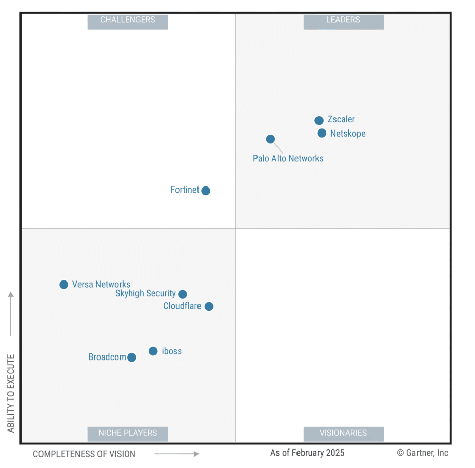 Zscaler wird im Gartner Magic Quadrant 2025 für Security Service Edge (SSE) als Leader eingestuft. Gartner bewertet Zscaler besonders stark in der operativen Umsetzung und der technologischen Ausrichtung. Für Unternehmen mit Cloud- und Zero-Trust-Strategie gehört Zscaler zu den führenden SSE-Plattformen.